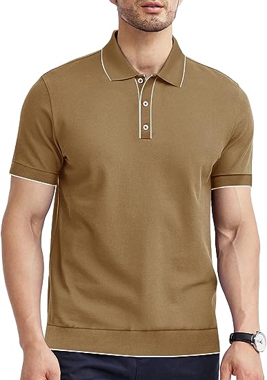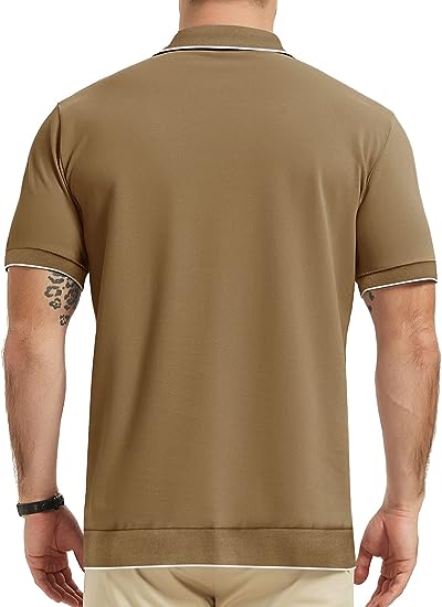Men's Knit Polo Shirt:The fabric of this knit polo shirt is soft and stretchy,breathable but not see-through,and the combination of cotton and polyester makes the polo shirt more skin-friendly and wrinkle-resistant.All of these make these polo shirts your go to choice in casual shirts.