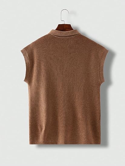 Design: Button front, collar, polo neck, sleeveless, rib knit, solid color, regular fit, casual style.